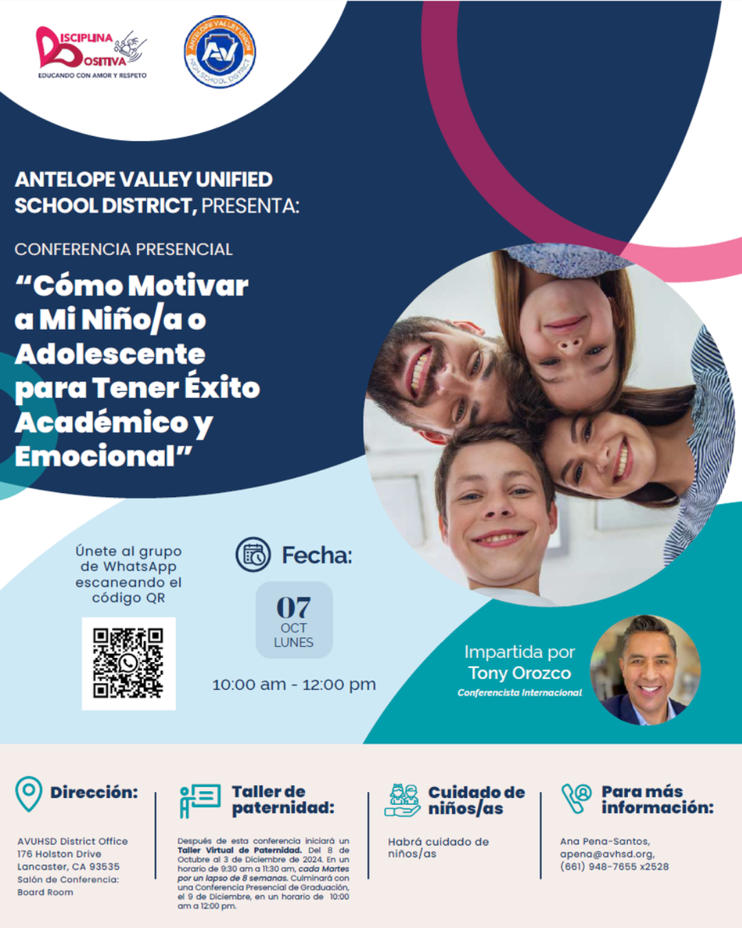 The AVUHSD invites you to Disciplina Positiva (Positive Discipline)! A parent workshop held entirely in Spanish by Tony Orozco!